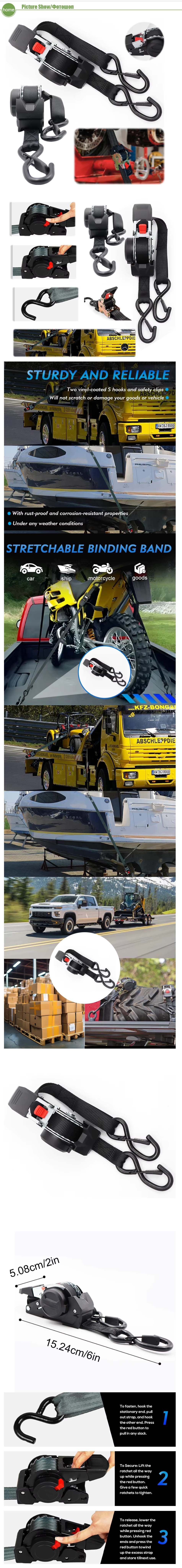 Retractable Ratchet Tie-Down Cargo Strap Um conjunto de 2 unidades