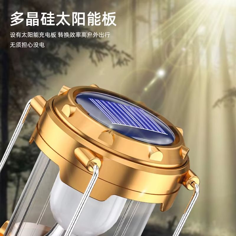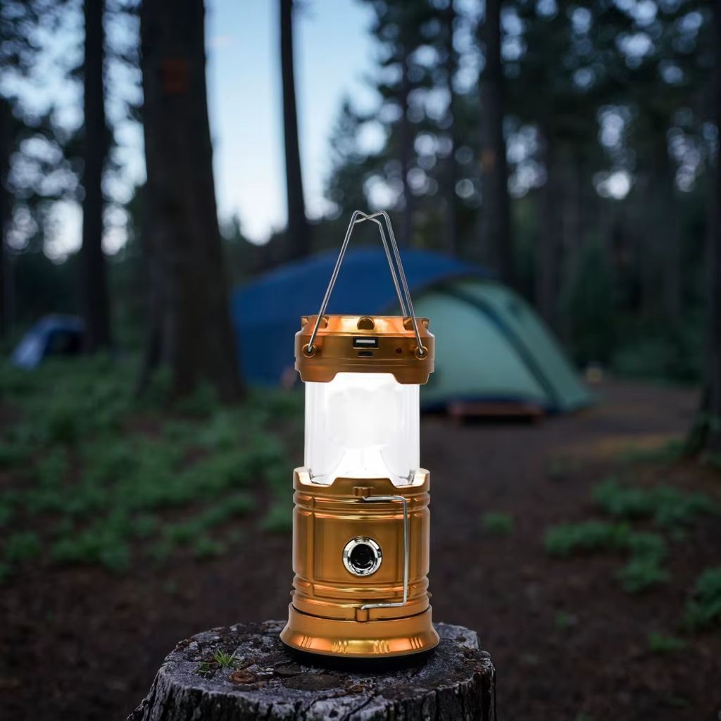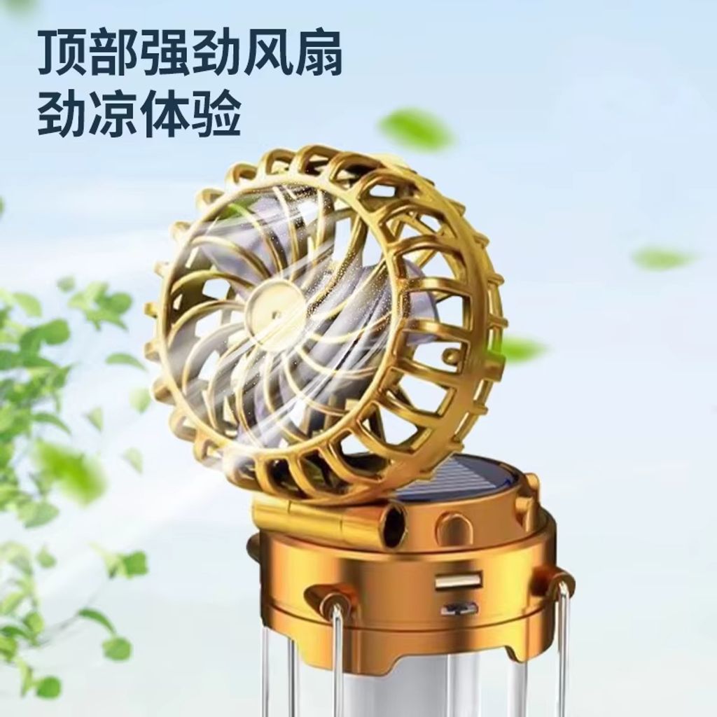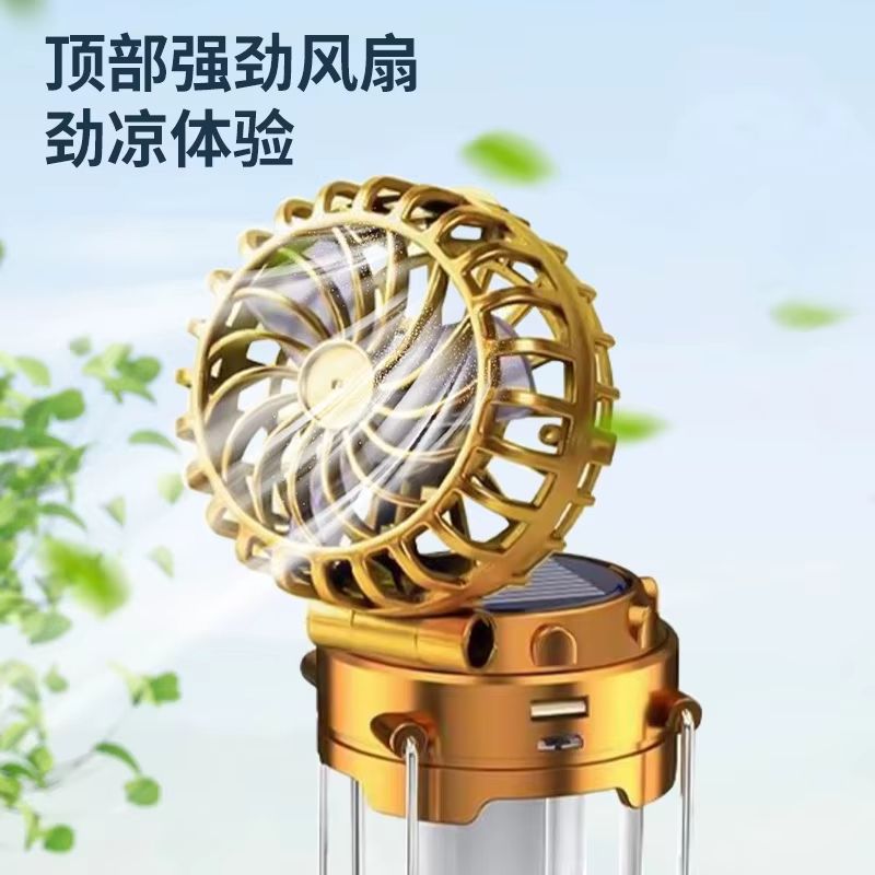 Lanterna de acampamento com ventilador externo, carregamento solar, LED, barraca de acampamento, lâmpada extensível portátil multifuncional